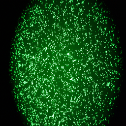 Calcein AMで蛍光染色された標的細胞(K562)